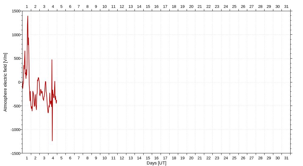 While electric field is observed with sampling rate 10Hz, the presented data are averaged by one hour time period.